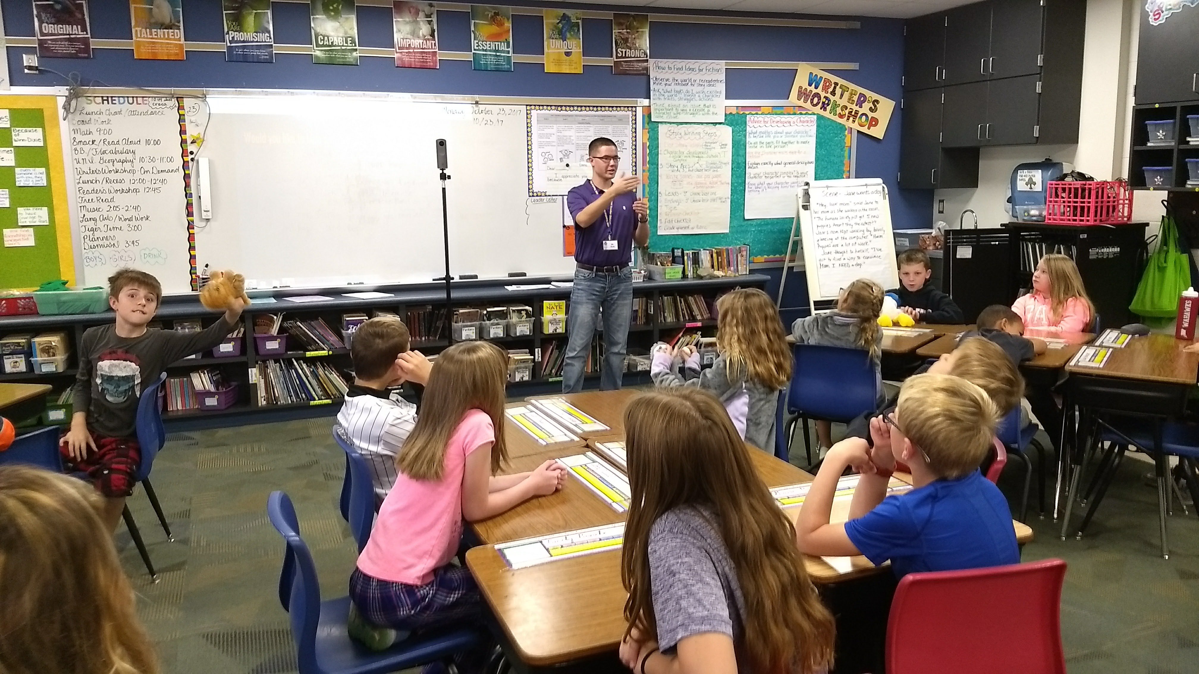 The GeoTREE Center and Geographic Alliance of Iowa students Ben Gavin and Josh Dyer developed the workflow and lesson plans. Josh presented three separate lessons over three periods for each 4th grade class including each student having the opportunity to capture imagery inside and outside. 4th Grade teachers Joan Hewett and Karen Shook were instrumental in making these lessons a success in their classrooms while Cedar Falls School District Technology and Instructional Coaches Luke Wagner and Joe Carney assisted in the lessons.